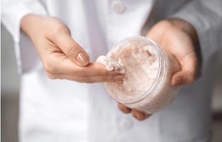 Le Gommage Moussant NV LAB aux grains de sucre et BHA élimine les cellules mortes et désincruste les pores tout en nourrissant la peau grâce à la Vitamine E.